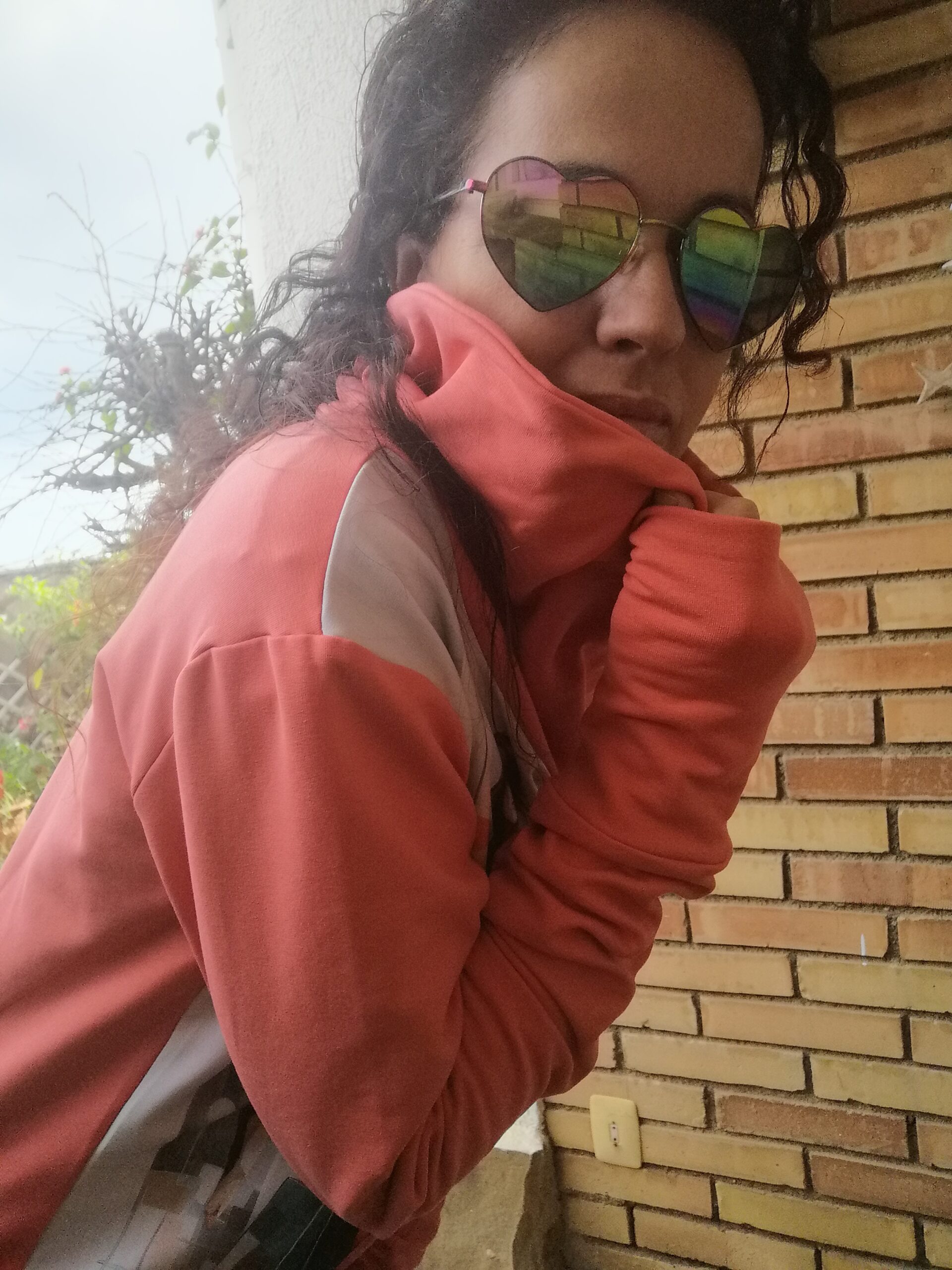 Modelo oversize, prenda holgada, mangas más anchas y hombros caídos.