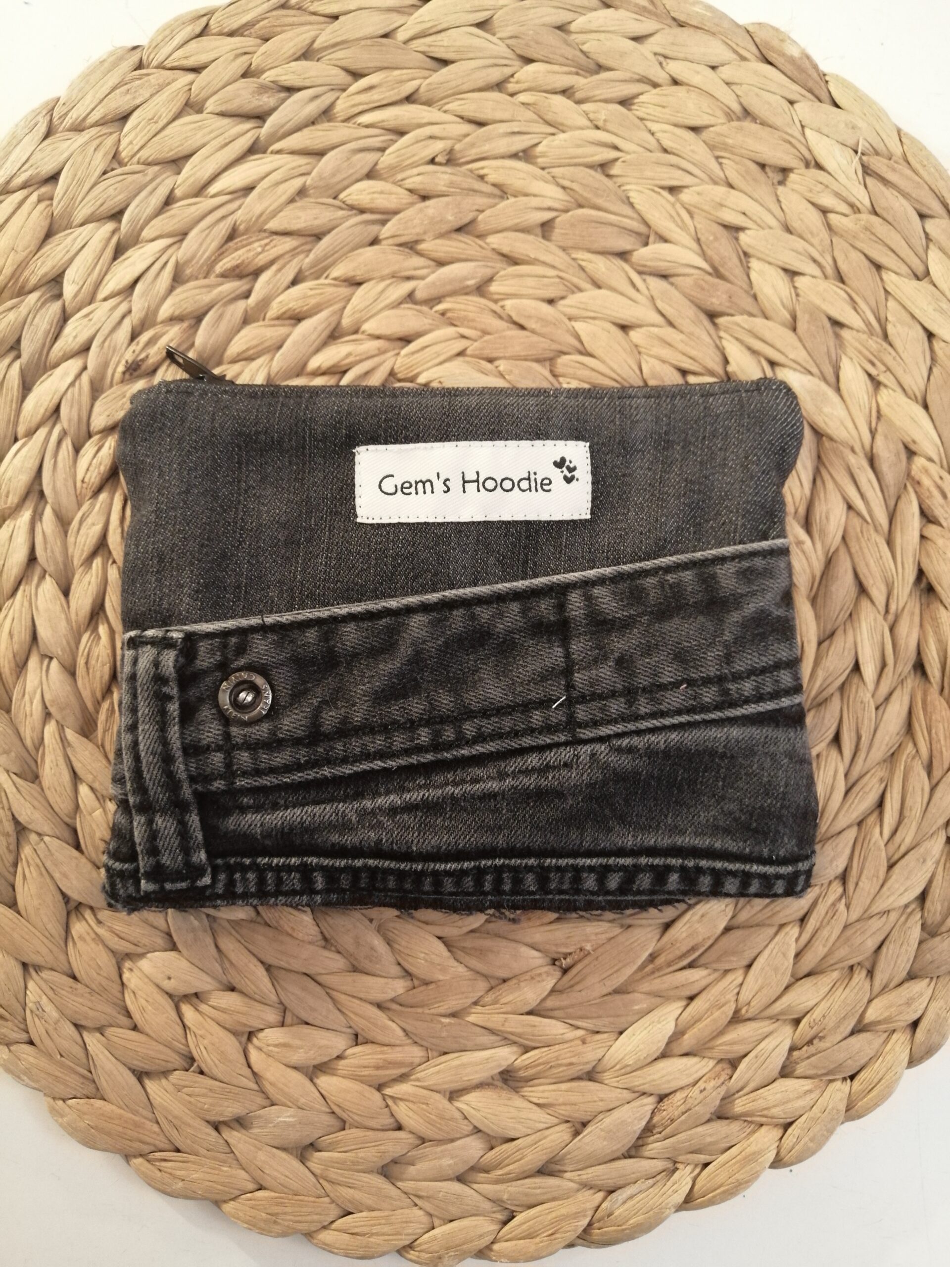 El Monedero Denim Black Chic combina artesanía, sostenibilidad y estilo en una pieza única hecha a mano con tejano negro reciclado.