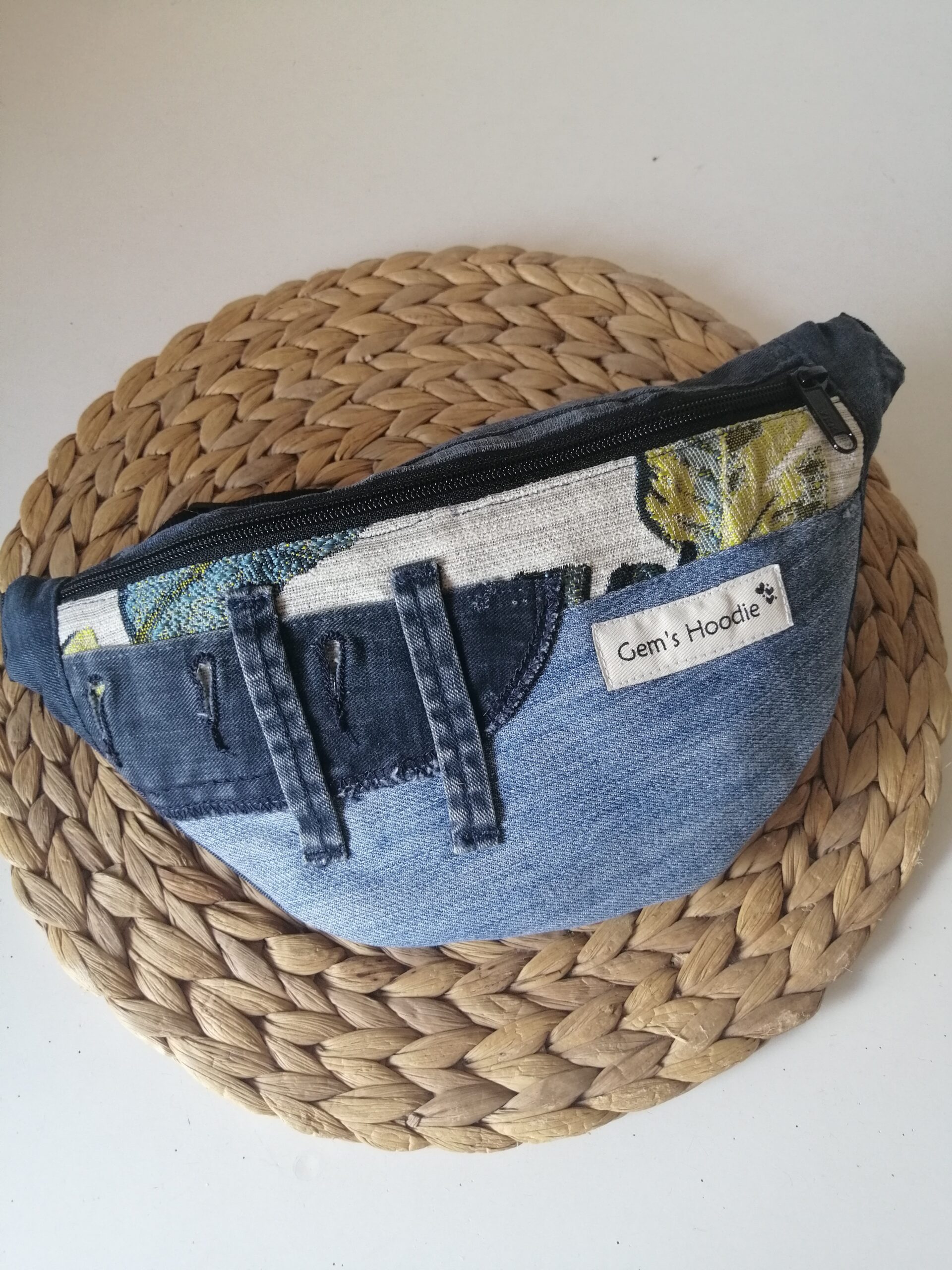 Riñonera hecha a mano, a partir de vaqueros reciclados.
